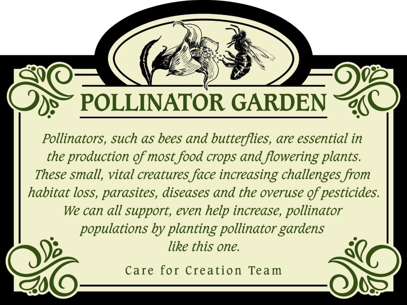 “We wanted to educate ourselves first in various environmental issues and then share that information with our parish but also implement as much as we could of the plan. So, the first thing we chose to do, because we could do it right away, was to plant a pollinator garden.” -Frances Mason